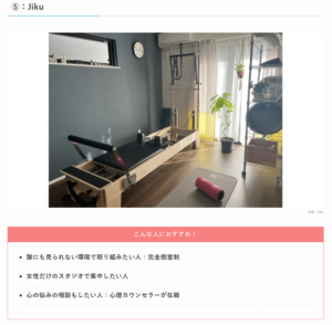 宝塚 マシンピラティスサロンJikuがピラティス情報を発信する「Pilates Palette」にご紹介いただきました。