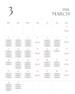 2026年2月のレッスンスケジュール